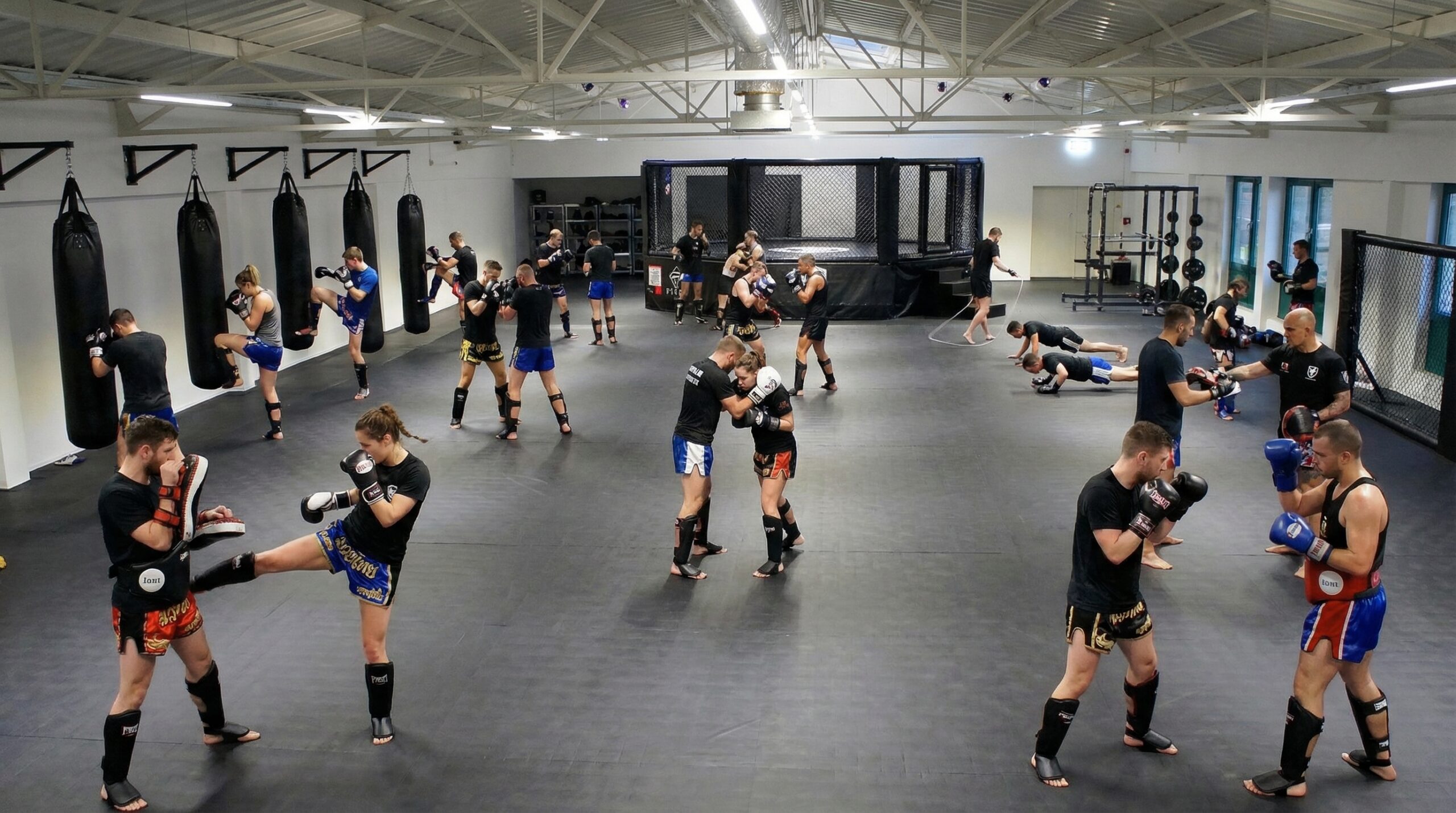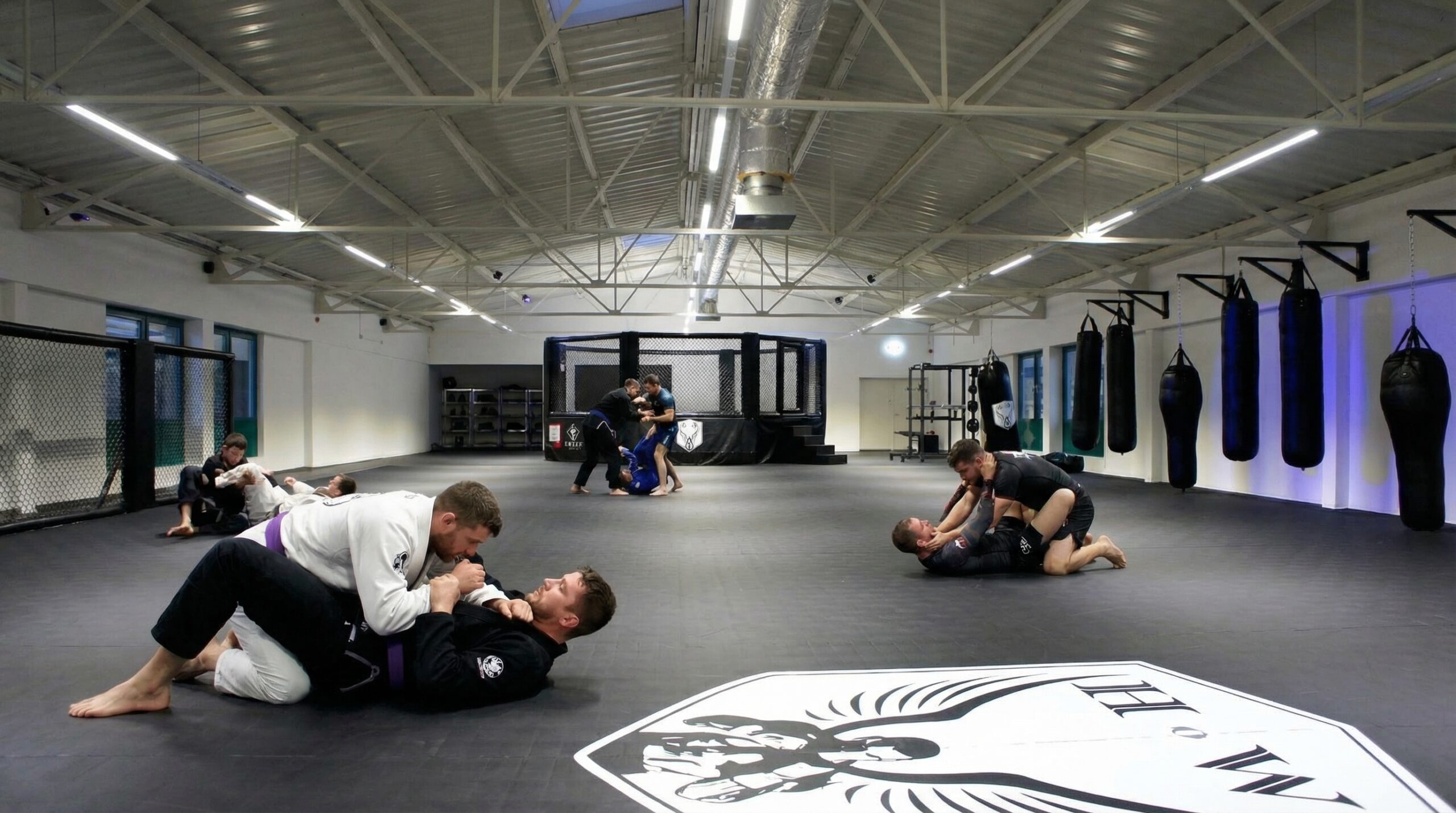 Großzügige Mattenbereiche, funktioneller Trainingsraum, saubere Umkleiden. Professionelle Bedingungen statt Improvisation.