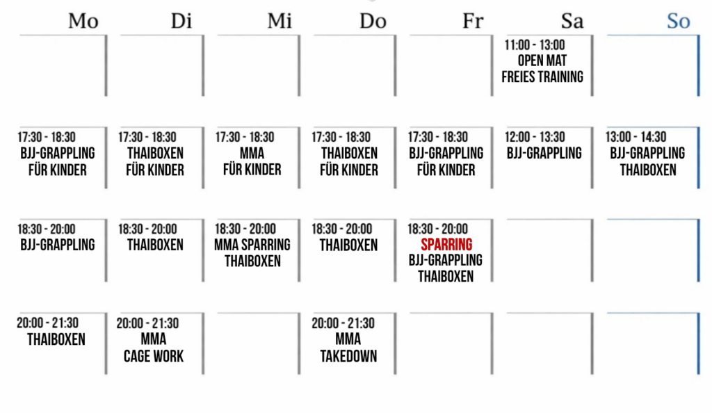 MMA · BJJ · K-1 / Kickboxen · Muay Thai · Kindertraining